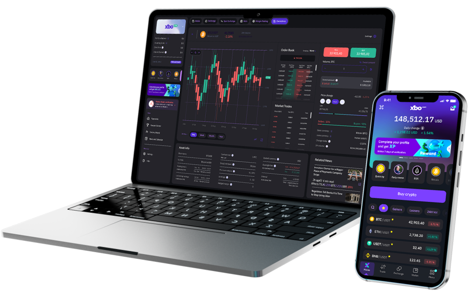 Aproveite todos os recursos da nossa plataforma inovadora onde você estiver ou no conforto da sua casa. As plataformas mobile e web da XBO permitem comprar, vender e trocar criptomoedas e muito mais.